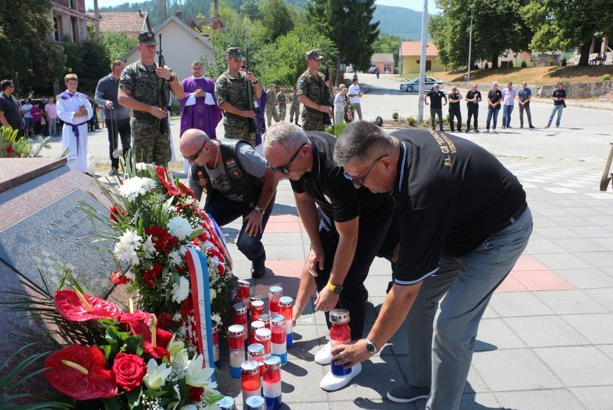 Nakon mise ispred spomen križa poginulim hrvatskim braniteljima u centru Bosanskog Grahova, uz molitvu i blagoslov, položeni su vijenci i upaljeni lampioni.