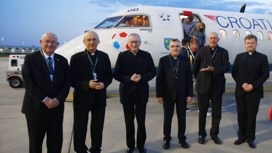 Kardinala Parolina dočekali su apostolski nuncij u Republici Hrvatskoj nadbiskup Giorgio Lingua, predsjednik Hrvatske biskupske konferencije zadarski nadbiskup Želimir Puljić, zagrebački nadbiskup kardinal Josip Bozanić, generalni tajnik Hrvatske biskupske konferencije preč. Krunoslav Novak te posebni savjetnik za vanjsku politiku hrvatskoga premijera Mate Granić.