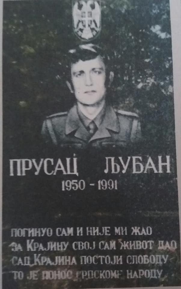 ‘Na ovom mestu 2.5.1991. poginuo je Vojislav Milić, prva žrtva rata u Borovu. Na Koreji kraj Dunava, levo, i ulazak je u Borovo selo, gde se mutni sastaju oblaci, tu padoše krajiški junaci. Živote su dali za slobodu, slobodu srpskome narodu. Slava im, Beli orlovi, Borovo 1991…