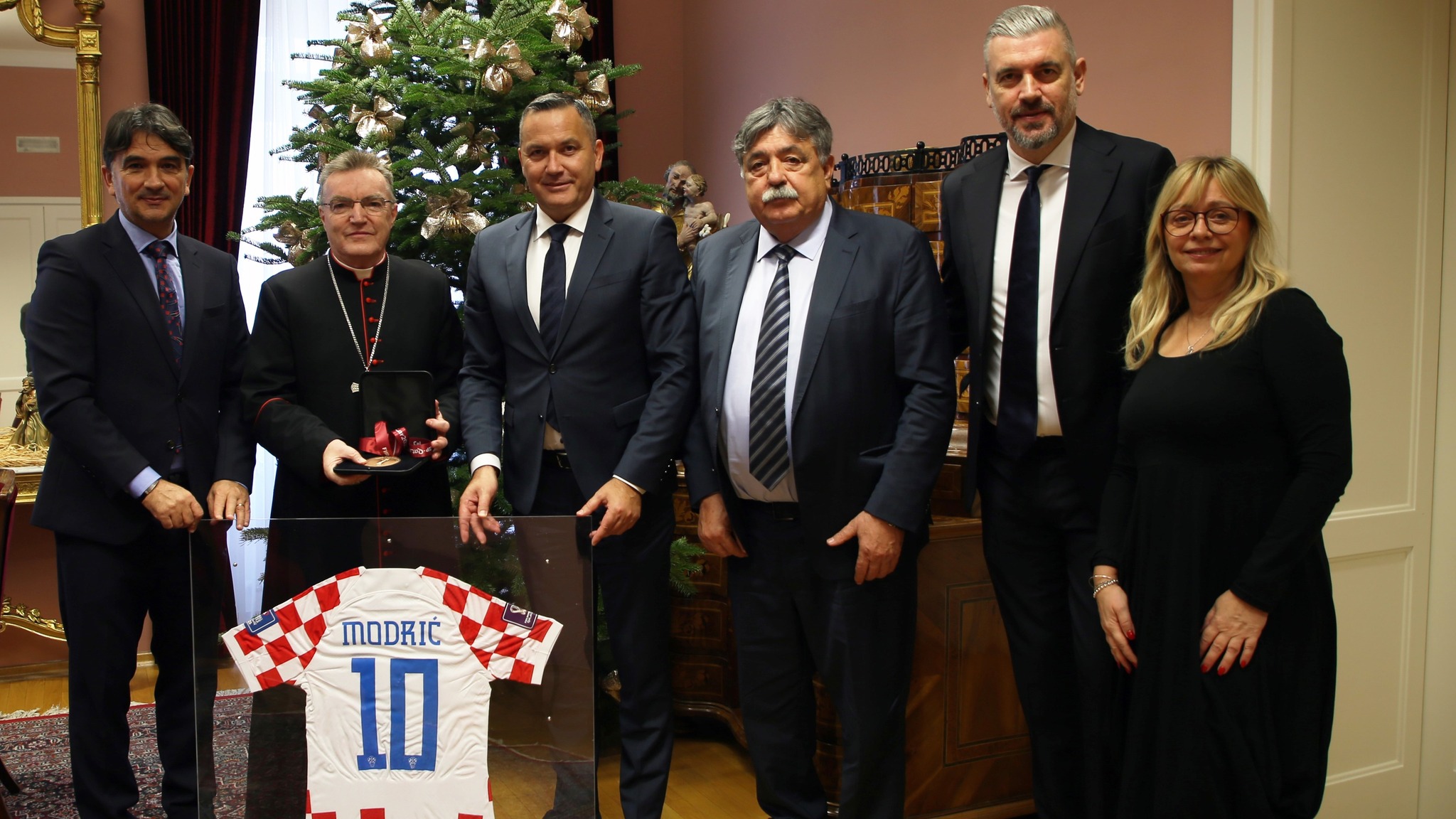 Predsjednik HNS-a Kustić i izbornik Dalić kardinalu Bozaniću su u znak zahvalnosti za potporu reprezentaciji predali brončanu medalju sa Svjetskoga nogometnoga prvenstva u Kataru, istovjetnu kakvu su dobili i hrvatski reprezentativci. Kardinal Bozanić na dar je dobio i dres hrvatske nogometne reprezentacije s imenom kapetana Luke Modrića. Kardinal je pak izborniku Daliću i reprezentaciji darovao medalju s likom sv. Josipa, zaštitnika Hrvatske, srebrno-zlatnoga sjaja, te poželio da ih taj sjaj prati i u budućim natjecanjima.