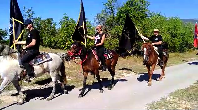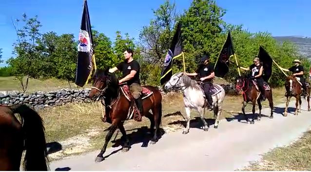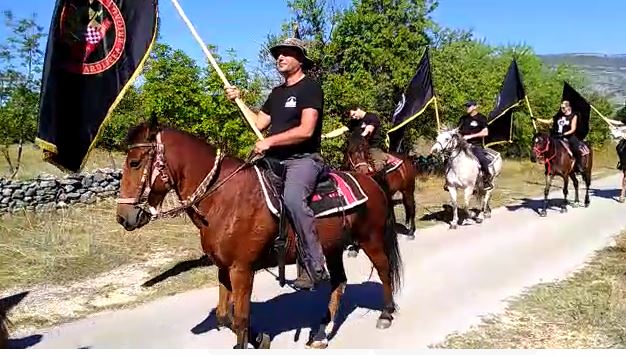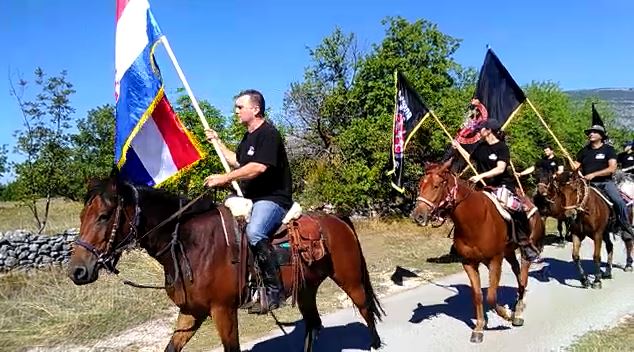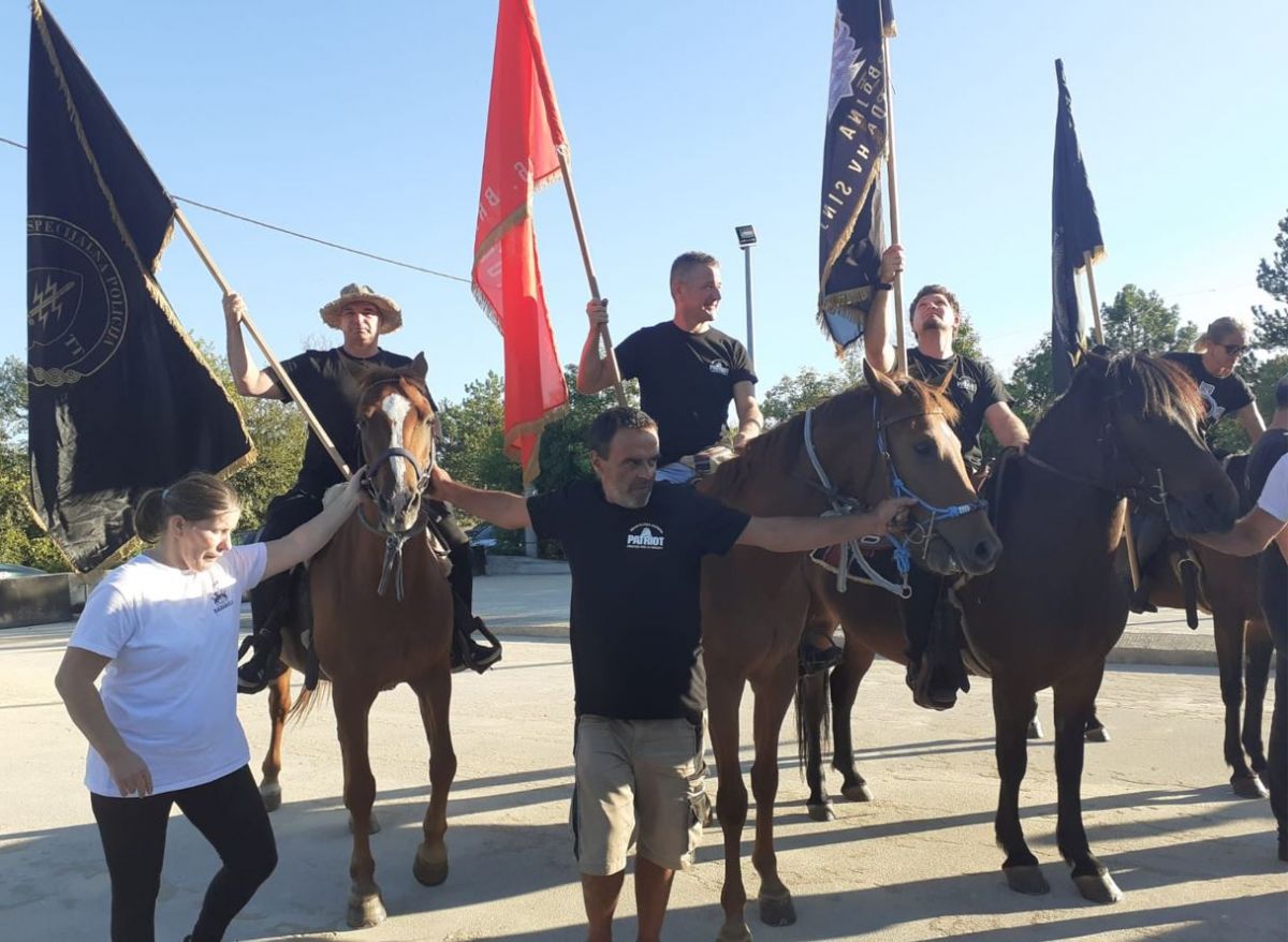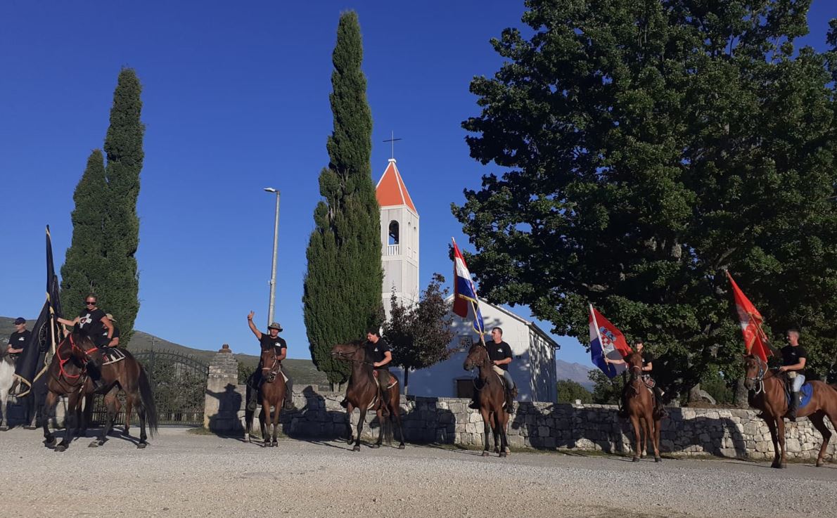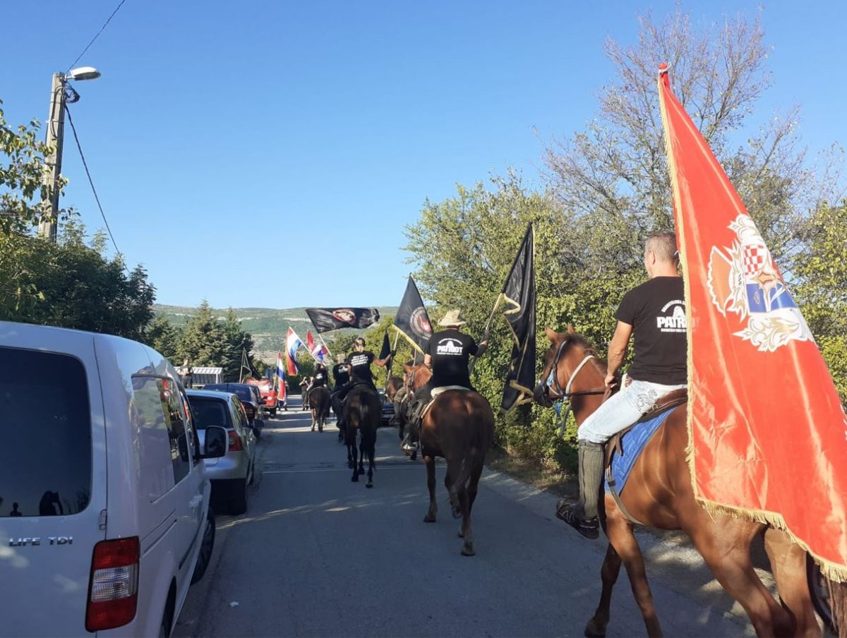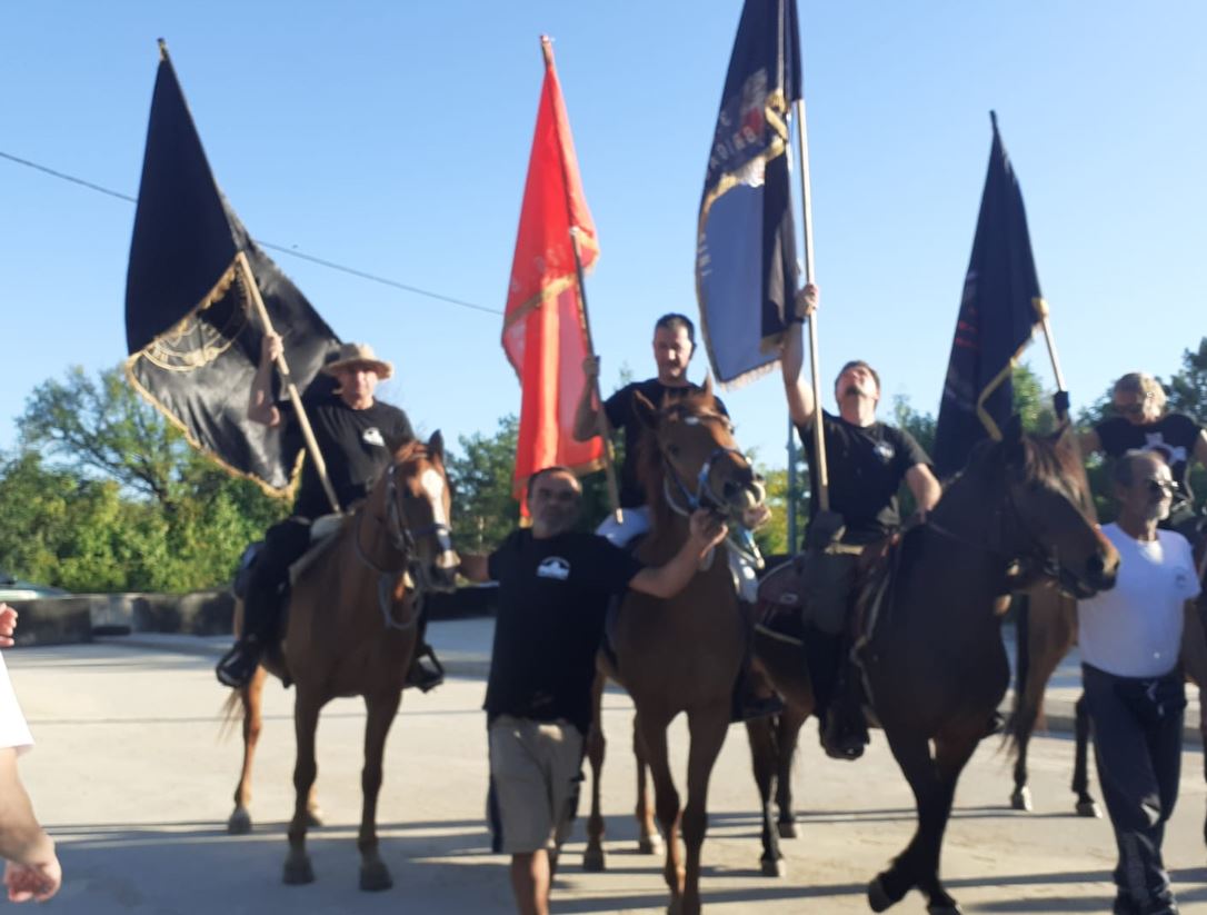 Na konjima su, noseći Hrvatsku i zastave ratnih postrojbi, obljetnicu uveličali jahači pripadnici BZ Patriot iz Dabra, na čelu s hrvatskim braniteljem Mariom Vujevićem- Vegijem.