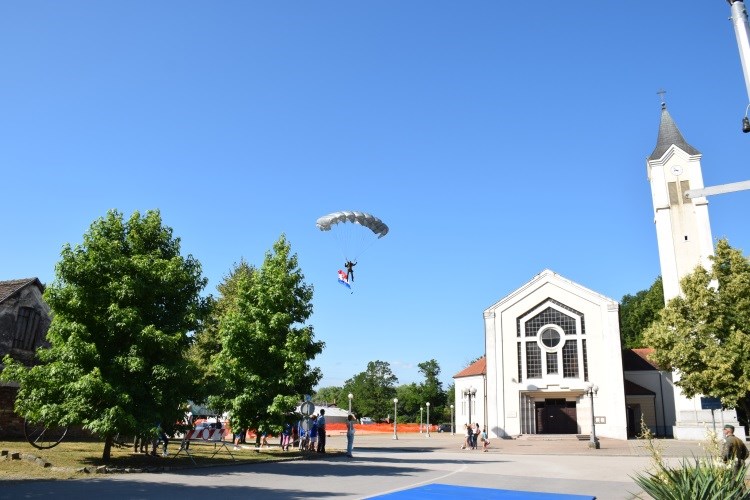 Svečani program započeo je padobranskim skokom pripadnika ATJ Lučko koji je sa sobom nosio hrvatski stijeg, a za vrijeme trajanja skoka pročitana je povijesti o početku oružanog otpora srpskom agresoru na glinskom području uz izvedbu skladbe Policijske klape sv. Mihovil. Zajedničkom koračnicom do Spomenika „Suza“ te izvedbom Himne policijske klape “Sveti Mihovil” upriličena je ceremonija podizanja zastave Republike Hrvatske.