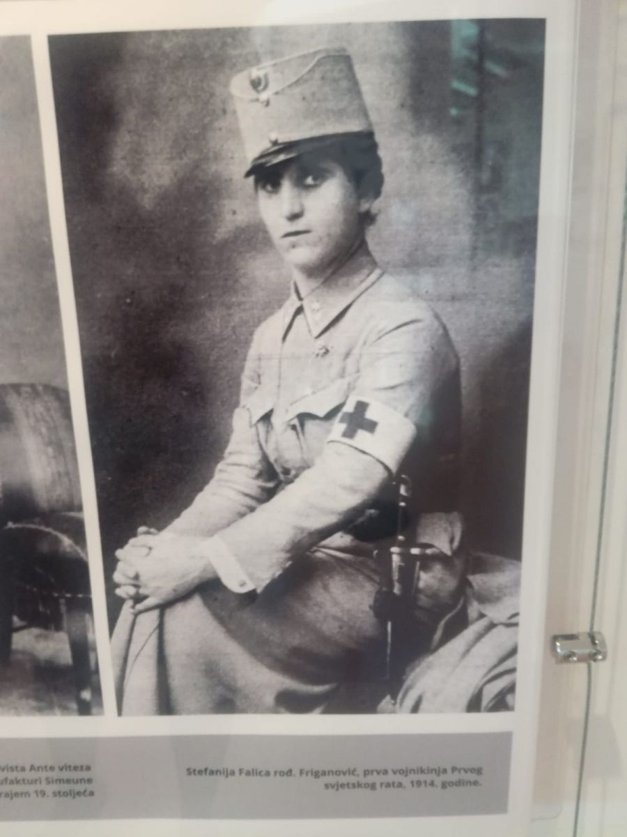 ŽIzložbu krasi i fotografija Stefanije Falice rođ. Friganović, prve vojnikinje Prvog svjetskog rata, iz 1914. godine. Posebnu pozornost plijene fotografije učenica sestara Benediktinki u prekrasnim haljinama koje su same sašile u školi kod sestara Benediktinki.