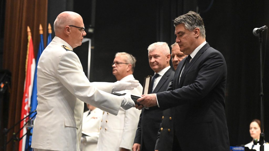 Odlikovanja, priznanja i nagrade Predsjednik Republike i vrhovni zapovjednik Oružanih snaga uručio je zajedno sa zapovjednikom Hrvatske ratne mornarice kontraadmiralom Ivom Raffanellijem. Uz predsjednika Milanovića na svečanosti obilježavanja Dana Hrvatske ratne mornarice bili su savjetnik Predsjednika za obranu i nacionalnu sigurnost Dragan Lozančić i pročelnik Vojnog ureda u Kabinetu za obranu i nacionalnu sigurnost kontraadmiral Predrag Stipanović.