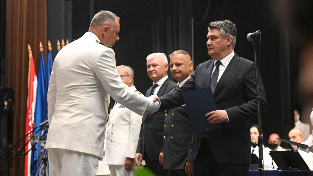 „Hrvatska vojske i Hrvatska mornarica imaju jedan primarni zadatak. To je obrana domovine, njezinih ljudi, stanovnika, hrvatskog naroda i svih onih koji žive u Hrvatskoj, hrvatskih gađana, hrvatskih granica i hrvatske demokratske vlasti izabrane na demokratskim izborima. To nas čini zapadom. Zapad jesmo, pod zastavama zapada smo se borili stoljećima, ali isto tako i pod zastavama hrvatskog identitet, koji je jedan, nedjeljiv i koji je poseban, koji je naš, koji samo mi u potpunosti razumijemo i do kojeg nikome osim nas stalo nije. Ne budemo li ga mi branili, unapređivali, njegovali, svoju djecu o njemu učili, kritički preispitivali – nećemo više biti mi“, zaključio je predsjednik Milanović.