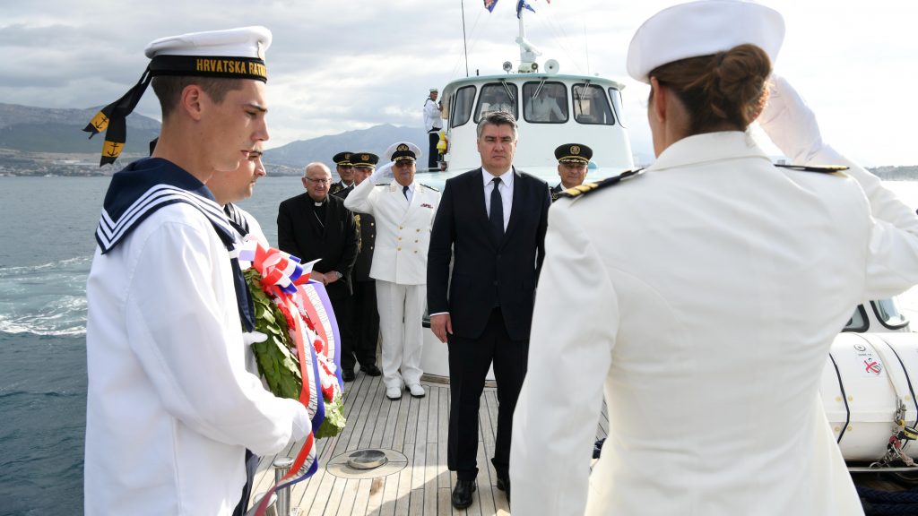 Za Hrvatsku ratnu mornaricu, Predsjednik Republike rekao je da je, kao i preostale dvije vitalne grane hrvatskih Oružanih snaga nastala iz ničega te da je u Domovinskom ratu imala jednu posebnu, stvarnu, ali i simboličku ulogu. „Jedina slavenska nacija koja je vezana uz more od svoga nastanka je hrvatska nacija. Niti jedna druga nije nastala kraj mora, uz more i bila organski pupčano vezana uz more kao Hrvatska. Niti jedan drugi slavenski narod. Mnogi su kasnije izlazili na more, živjeli na moru, plovili po moru, ali nitko kao Hrvati ni blizu. Ovih više od tisuću kilometara obale, i to ne bilo gdje, skoro u srcu Europe je jedinstvenost nas, prostora kojeg smo obranili, koji smo naselili i kojeg nam je Bog dao“, naveo je predsjednik Milanović.