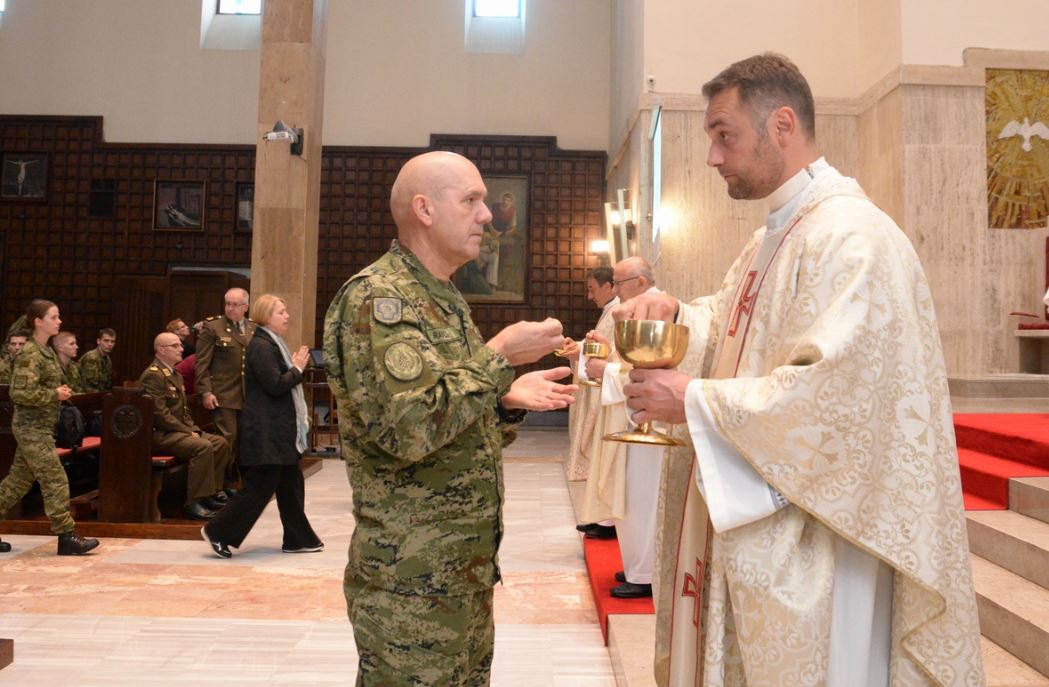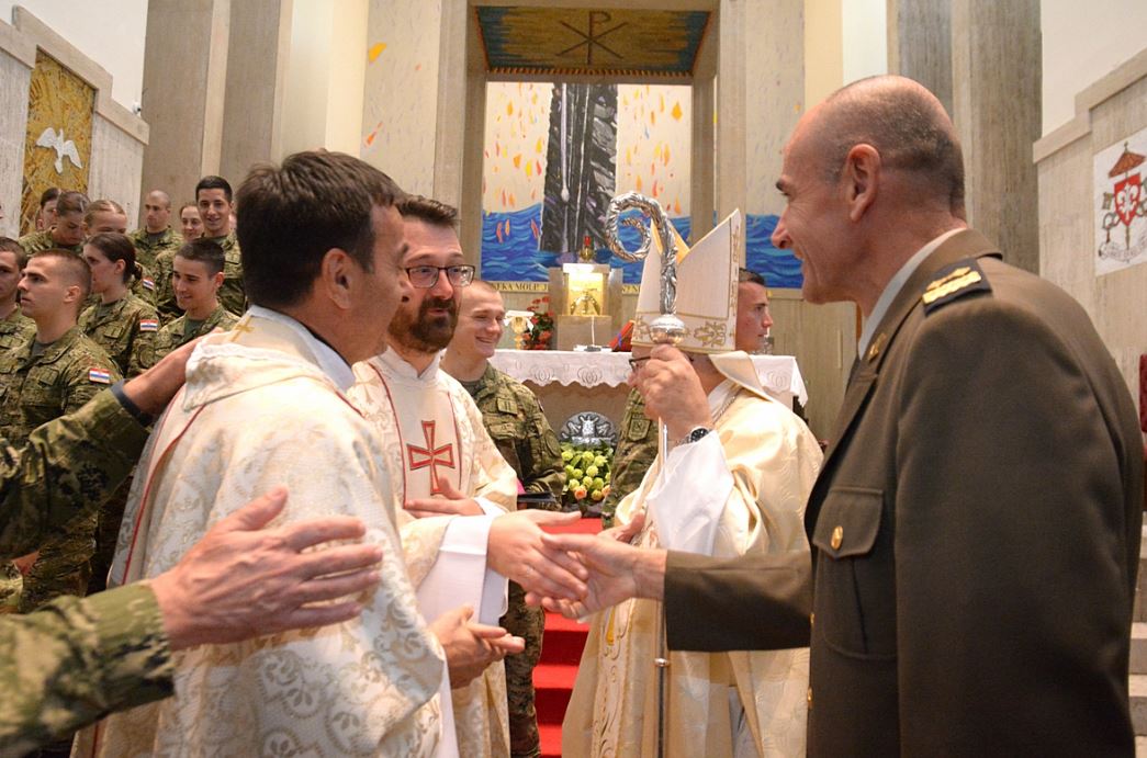 Na kraju propovijedi biskup je okupljenima prenio riječi koje je papa Franjo prošle srijede na općoj audijenciji uputio vjernicima vojne biskupije u RH prilikom zahvalnog hodočašća Vojnog ordinarijata povodom 25. obljetnice utemeljenja:
