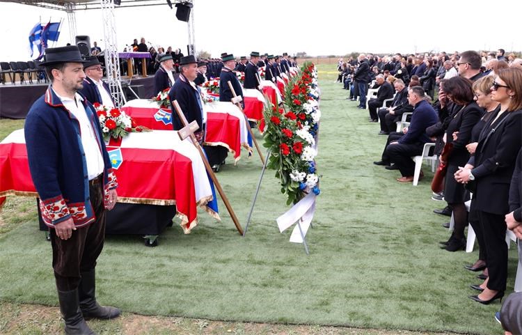 Od Katice, Ane, Evice, Marije, Pere, Josipa P. i Josipa M., Franje, Vlade, Ivana i Stipe nadbiskup Đuro Hranić oprostio se među ostalim riječima: “Njihova nasilna smrt, višegodišnja šutnja o njihovoj sudbini te pronalazak njihovih zemnih ostataka zatrpanih na deponij i na mrcinište, gdje se odlažu uginule životinje, svjedoče nam ne samo o zvjerstvima učinjenim u brutalnoj agresiju na Hrvatsku i o nevjerojatnoj morbidnosti onih koji su ih onamo ukopali, nego i o strahoti zla s kojim smo bili suočeni kao narod, o obrambenom karakteru s legitimnosti domovinskog rata te o značenju i važnosti pobjede koja nam je osigurala slobodu.”, donosi-Hrvatski katolički radio