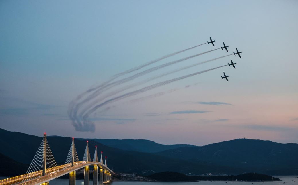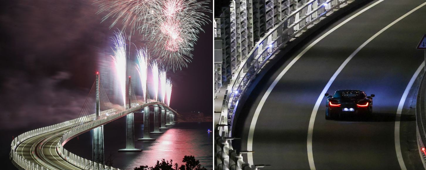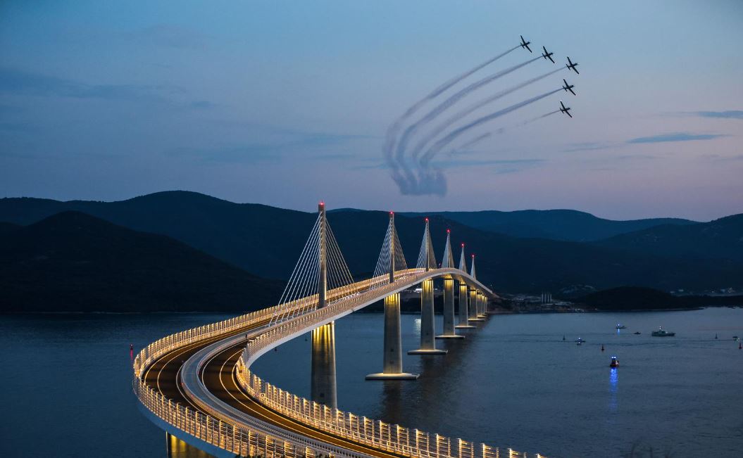 Prelaskom prvih automobila i motocikala, uz oduševljenje nazočnih građana i dužnosnika, veliki vatromet, trube, bengalke s brodica, pucnjavu Dubrovačkih trombunjera i zvona crkava Dubrovačke biskupije, svečano je otvoren i u promet pušten Pelješki most. Cjelokupna čelično-betonska konstrukcija Pelješkog mosta ispod i iznad vode zajedno je teška kao 30 Eiffelovih tornjeva, te je najveći hrvatski infrastrukturni projekt financiran iz EU-ovih fondova s bespovratnih 357 milijuna eura (85 posto troškova), a na njemu je tijekom deset godina radilo nekoliko vlada.