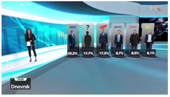 Prema rezultatima provedene ankete četvrtina birača i dalje bi zaokružila HDZ, točnije njih 25,2 posto. Također i dalje, neodlučni su druga politička snaga u zemlji i usto snaga koja bi mogla odlučiti o izbornom pobjedniku. Trenutačno ih je 17,7 posto, dok im SDP nikad nije bio bliže. Ovaj su mjesec malo iznad 17 posto potpore (17,3 posto), ali ovaj mjesec Možemo! više nije odmah iza SDP-a.