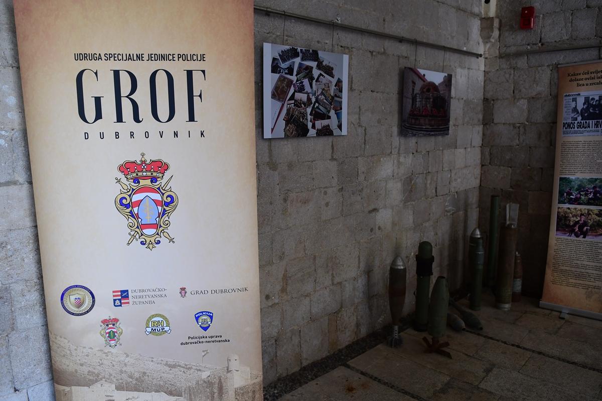 – Kao i svaka njihova ratna priča, i ova je prožeta humorom. Kažu kako se u Ferijalu (zgrada nekadašnjeg Ferijalnog saveza Dubrovnik koja je služila kao privremena baza SJP Grof) raspravljalo ispred skladišta. Bila je tu poveća ekipa. Da ne bismo nekoga izostavili nećemo izdvajati imena. Odmah su znali da ne žele ime po nekoj životinji, iako je i takvih prijedloga bilo (poput Krokolokana). Neki od prijedloga bili su Kavaliri, a da im simbol bude Johnnie Walker s poznatog branda škotskog pića, ali njihov bi Kavalir umjesto štapa nosio mač. Drugi su predlagali Gospari, a neko vrijeme na vratima stajao im je i natpis s kutija cigareta koje su se u to vrijeme konzumirale – Lord. Na kraju su se usuglasili oko imena Grof. Prva oznaka imala je simbole munje, ruže i mača. Nakon toga tiskaju se oznake s natpisom Grof, iako se na nekima potkrala greška pa neke oznake nose i natpis Groff, no to je vrlo brzo ispravljeno i u dokumentima je službeno upisan naziv Specijalne jedinice policije Grof, Dubrovnik – objasnili su na izložbi, donosi dulist.hr.