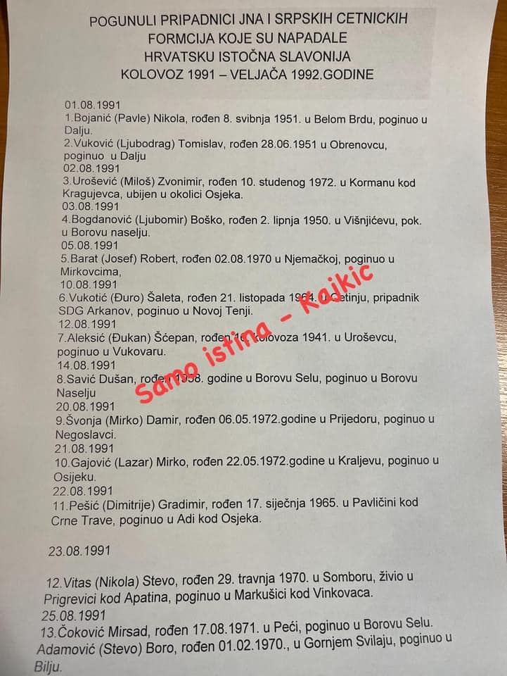 👉OBJAVLJUJEM PO PRVI PUTA JAVNO PUNA IMENA I PREZIMENA PRVIH 302 BORCA NA SRPSKOJ STRANI KOJA SU UBIJENA PRILIKOM NAPADA NA VUKOVAR I OKOLICU 1991!!