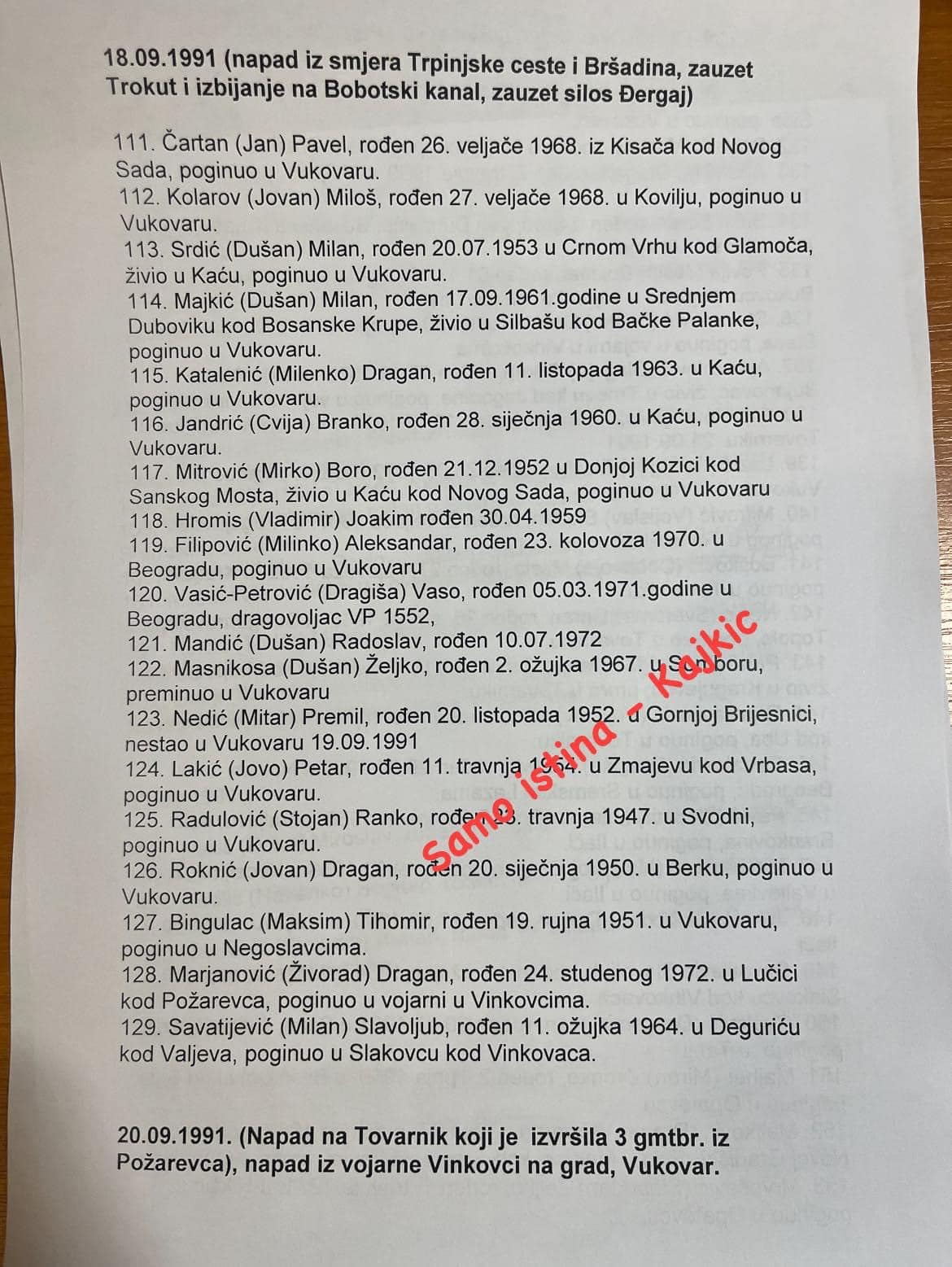 Nikola Kajkić je na svojem Facebooku objavio popis pripadnika četničkih formacija i zločinačke JNA koji su izgubili glavu u jurišima na Vukovar i okolna mjesta. Objavu i popise prenosimo u cijelosti: