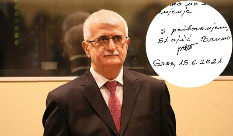 Kao što nisam posebno spominjao u svom zahtjevu za ranije puštanje , nemam posebnih zdravstvenih problema i iskreno se nadam da ću uz vaše razumijevanje biti u prilici da se pridružim svojoj obitelji i zajedno s njima nastavim život bez bilo kakvog javnog angažiranja i bilo kakvog ni najmanjeg pokušaja revidiranja činjenica utvrđenih presudama međunarodnih kaznenih sudova ili sudova u Bosni i Hercegovini” – napisao je Bruno Stojić, prenosi Brotnjo.info.