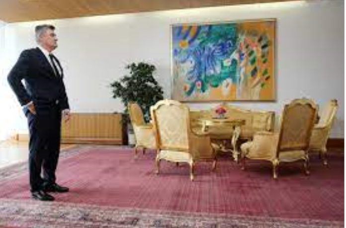 Prisegnuo je za predsjednika Hrvatske, pomaknuvši cijeli inauguracijski program u skučeni prostor na Pantovčaku, ne poštujući povijesne prisege svojih prethodnika i svoje prethodnice koji su, svi redom od prvog hrvatskog predsjednika dr. Franje Tuđmana naovamo do Mesića, Josipovića i Kolinde G.Kirtrović, prisegnuli na Trgu sv. Marka i samim tim pokazao svoje pravo lice.