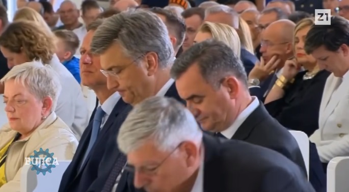 “Fra Josip je nakon propovijedi dobio dugotrajni i veliki pljesak, kakav se rijetko viđa na svetim misama! Andrej Plenković nije mogao sakriti sram i slušao je svećenikove riječi pognute glave, a kad su branitelji i narod ustali na noge kako bi još jače zapljeskali hrabrom fra Josipu – drug AP je ostao sjediti u prvome redu i zadnji je ustao”, prenosi Bujica uz snimku. Pogledajte!