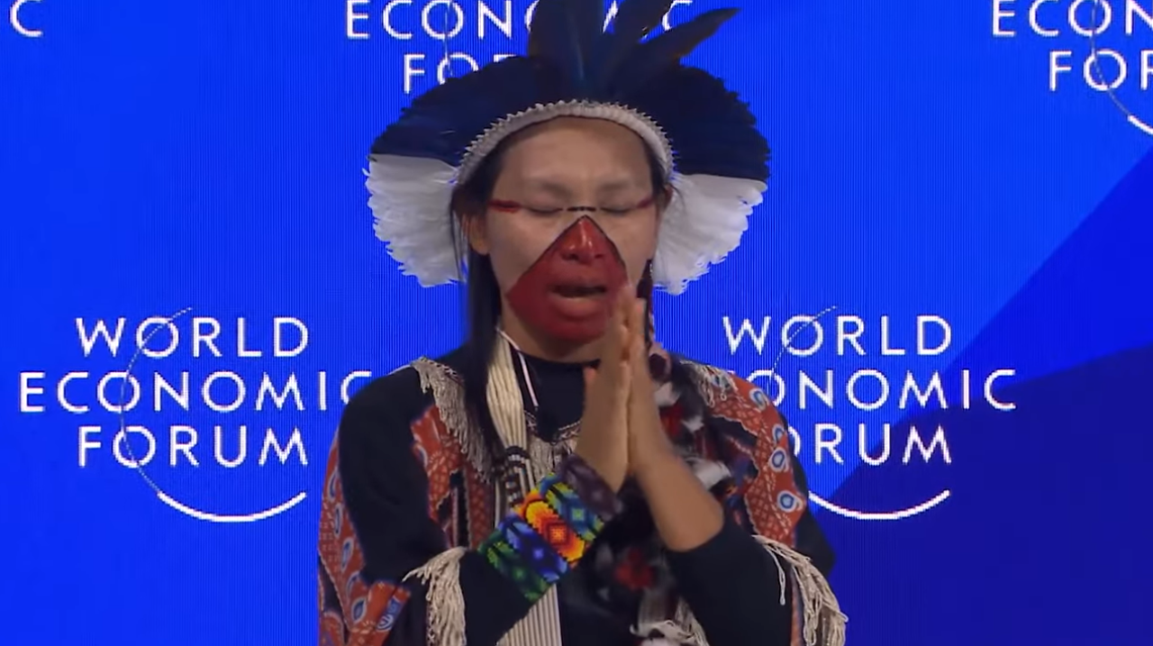 Nakon što je izgovorila nekoliko zaziva dok je trljala ruke, žena koja je predstavljala starosjedioce puhnula je u glave sudionika, među kojima su bili direktorica Međunarodnog monetarnog fonda, Kristalina Georgieva; predsjednik Svjetske banke Ajay Banga; predsjednik Uprave IKEA-e Jesper Brodin; i milijarder André Hoffmann, prenosi Bitno.net.