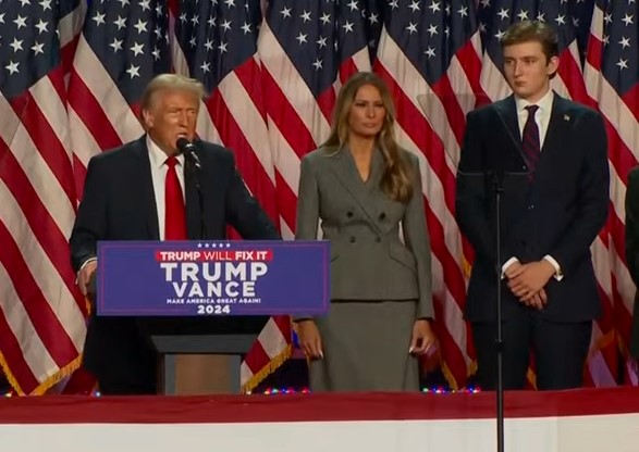 Donald Trump je stigao u svoj stožer u West Palm Beachu na Floridi, gdje je održao svoj govor pred okupljenima. Na pozornici s njim bila je prva dama Melania Trump, Trumpova djeca te budući potpredsjednik JD Vance.