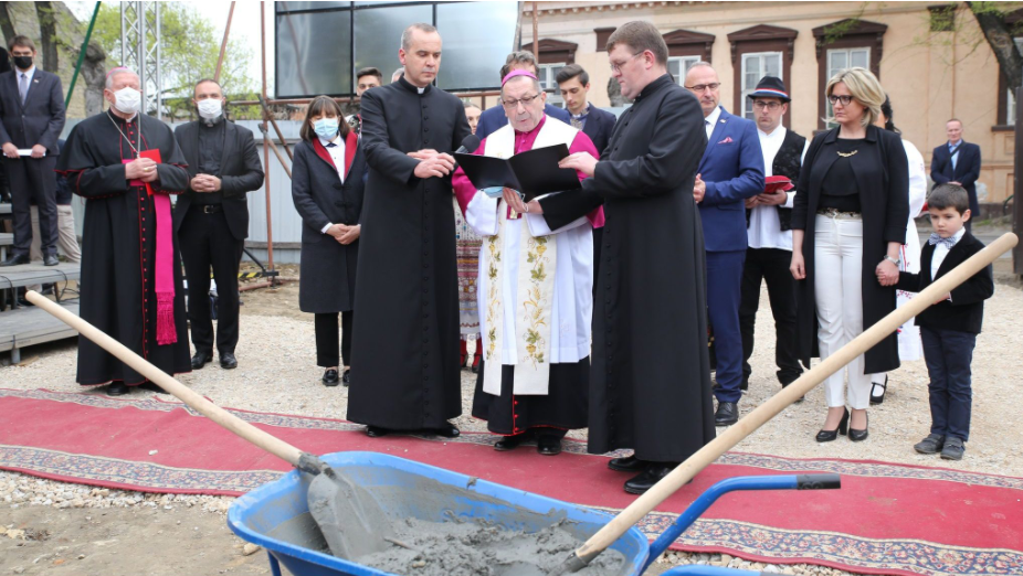 Kamenje su položili ministar vanjskih i europskih poslova Republike Hrvatske Gordan Grlić Radman, državni tajnik Središnjeg državnog ureda za Hrvate izvan Hrvatske Zvonko Milas i predsjednik DSHV-a Tomislav Žigmanov, a vremensku kapsulu predsjednica HNV-a Jasna Vojnić s malim Ivanom Vukovim, kao simbolom budućnosti Hrvata u Srbiji.