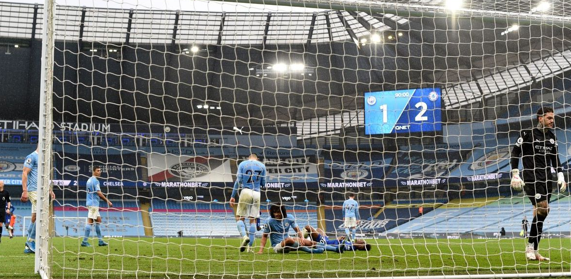 Domaći su stigli do prednosti u završnici prvog poluvremena kada je Christensen promašio loptu, pritom se i ozlijedio, a Gabriel Jesus ubacio loptu pred gostujuća vrata. Tamo je Sterling bio spretniji od Aguera i on zatresao mrežu za 1:0. I prije no što je Zouma zamijenio ozlijeđenog Christensena, City je dobio kazneni udarac iz kojega je mogao povećati na 2:0. Gilmour je zaustavio prekršajem Gabriela Jesusa u svom kaznenom prostoru, a loptu je uzeo najbolji strijelac u povijesti Cityja Aguero.
