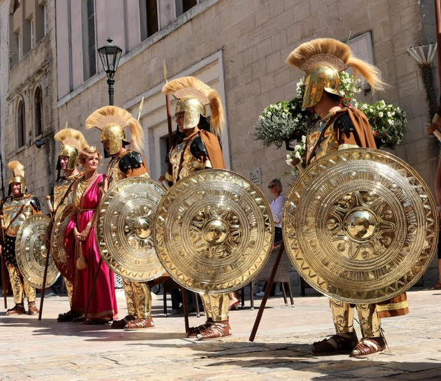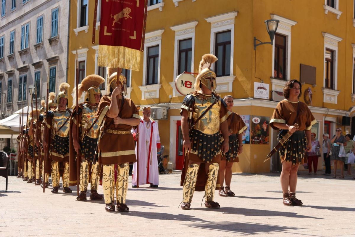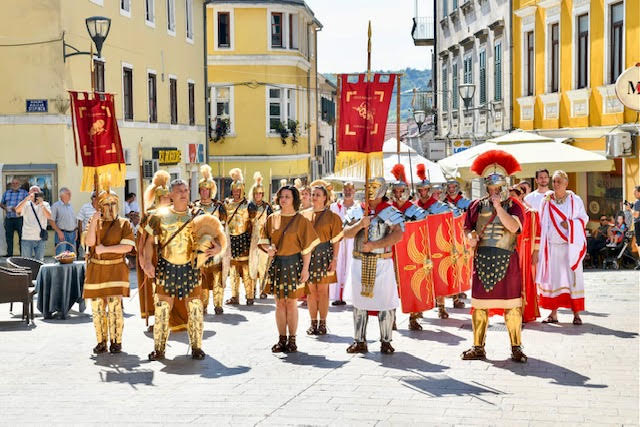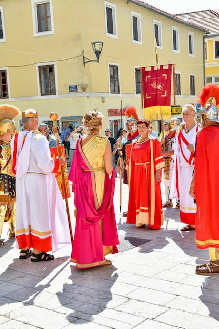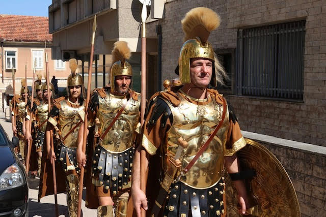 Uz uigran korak stiže rimska legija, upravo ona Legio VII Claudia koja je taborovala na gardunskim brdima iznad kanjona Cetine, car, carica, barjaktar, centurion na čelu.