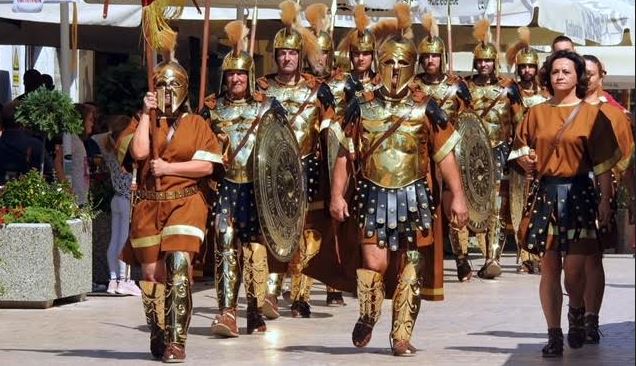 U svom prvom koraku pred svoje sugrađane stižu u odorama pod šljemom i sjajnim štitom, a zlatne zrake samo pojačavaju moćni dojam pobjedničke vojske.