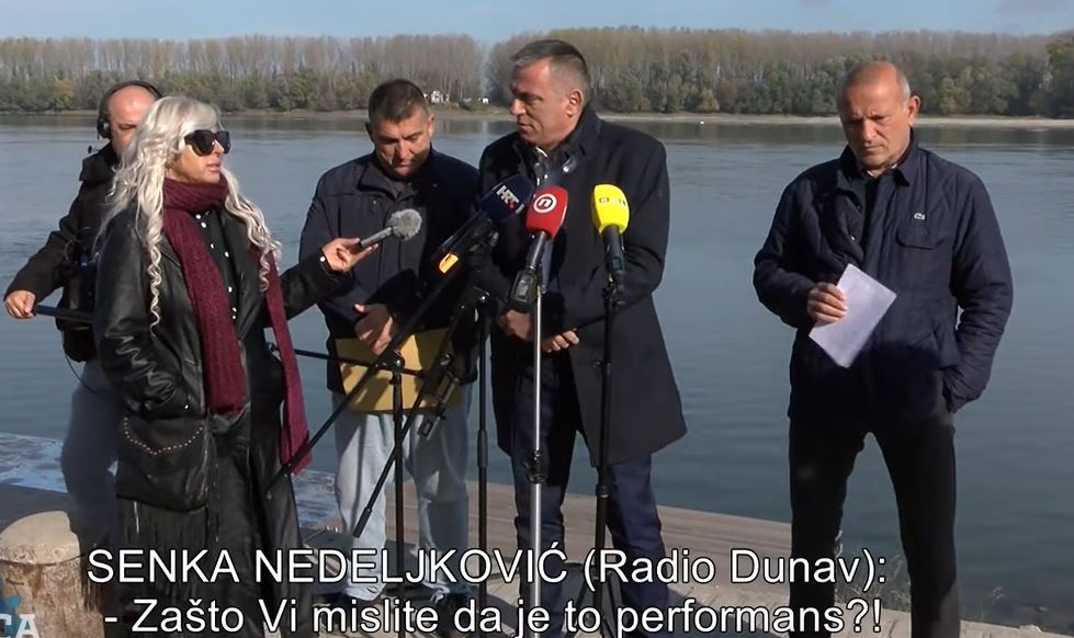 SDSS je na presicu DP-a, u ulozi novinarke, poslao provokatoricu – izvjesnu Senku Nedeljković s lokalnog srpskog Radija Dunav. Nakon što je osebujna aktivistica pokušala sugestivnim pitanjima opravdati bacanje ‘venaca’ u Dunav za navodne srpske žrtve 17. studenoga 1991. godine, Stipo Mlinarić Ćipe prvo joj je objasnio tko su bili ti “civili”, a potom ju je ušutkao i Tomislav Josić…