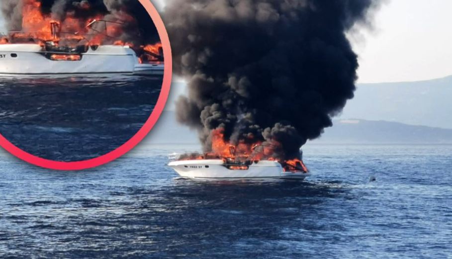 VIDEO U moru kod Splita zapalila se brodica, spašene četiri osobe…