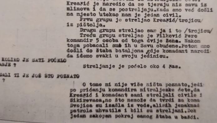 Streljanje smo izvršili poslije pola noći na lijevoj obali rijeke Save sa pištoljima u zatiljak i gurnuli ih u vodu, u tok rijeke Save.