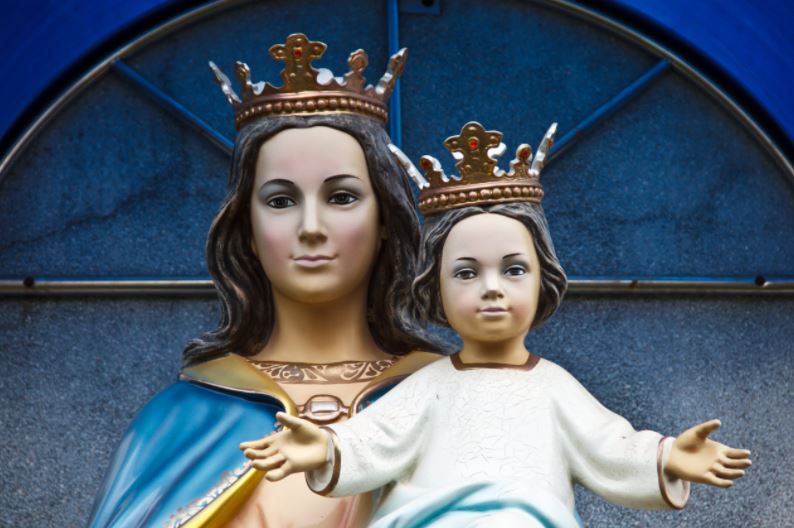 O Marijo, naša moćna zaštitnice, slavna zagovornice ljudskog roda, izbavi nas iz ruku paklenog neprijatelja i čuvaj nas kao vlasništvo našeg Boga i Gospodina.
